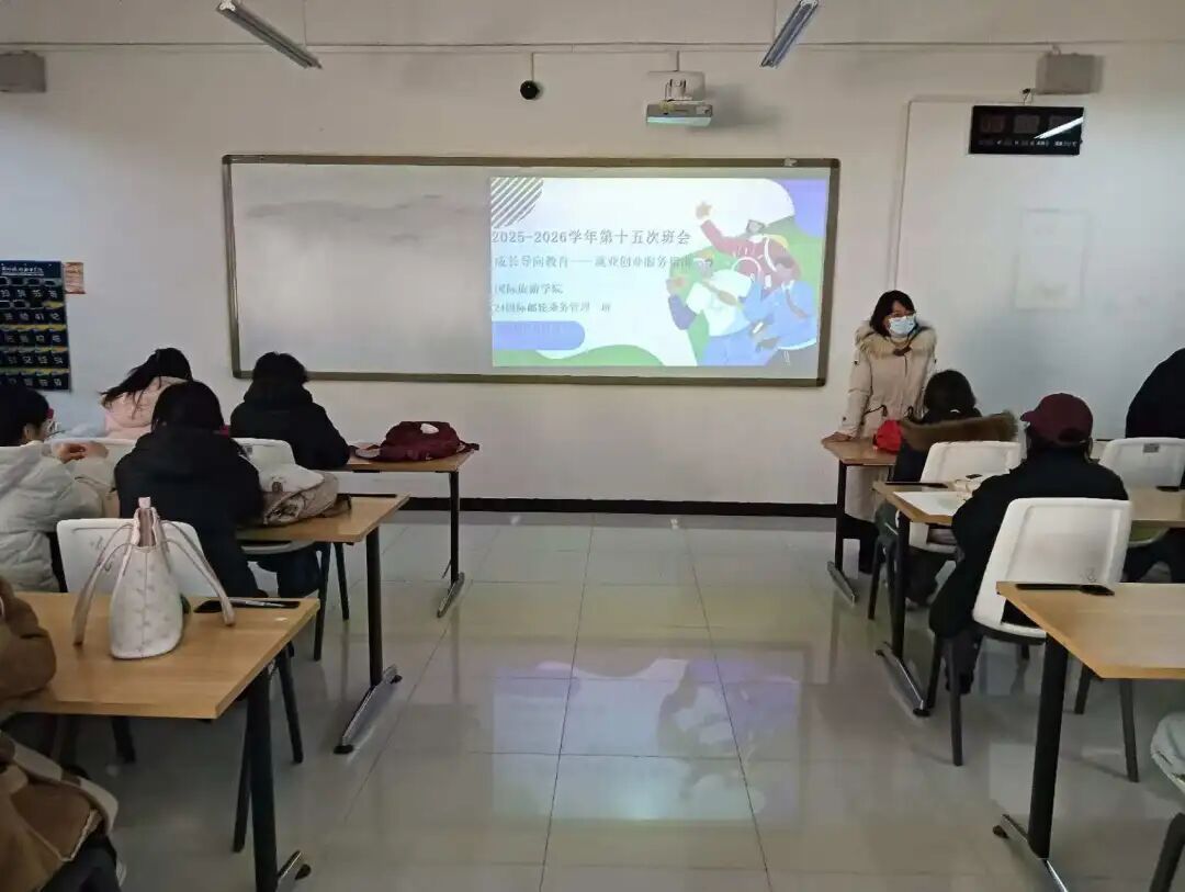 为切实提升学生职业规划意识与就业创业能力,12月15日,国际旅游学院组织2024级各班召开“成长导向教育——就业创业服务指南学习”主题班会。班会聚焦政策解读、趋势分析与能力培养,引导学生将成长规划与实际行动相结合,现场学习氛围浓厚,互动积极。