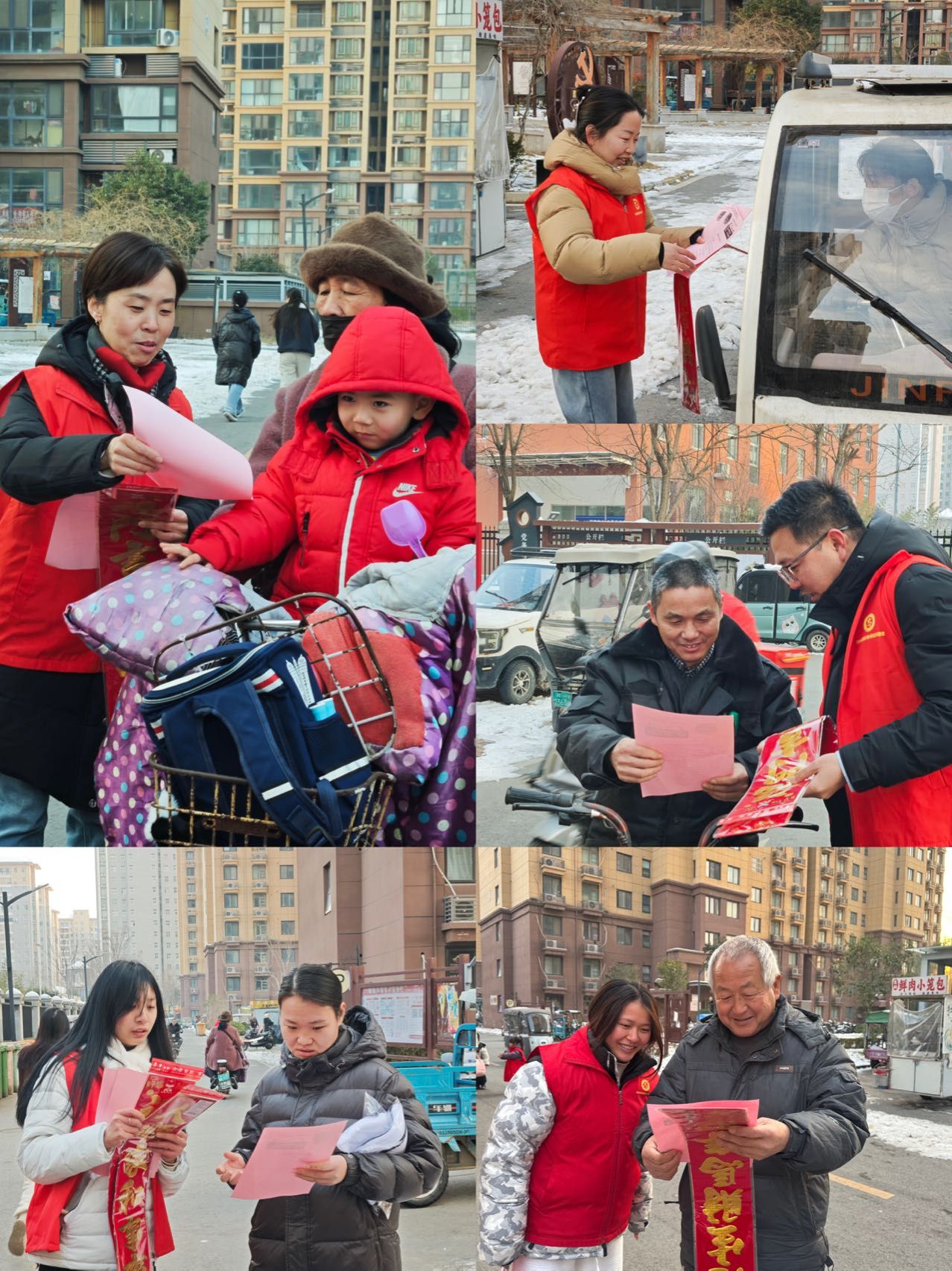 志愿者们将一幅幅寓意吉祥的春联送至居民手中,在亲切交流中传递新春祝福。红联含笑,暖意融融,为社区增添了浓厚的人文气息与节日温情。
