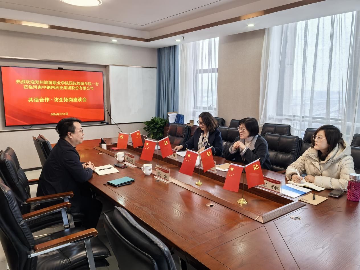 为深入贯彻落实高质量就业工作,推动人才培养与产业需求精准对接,助力毕业生实现更充分就业,2026 年 2 月 6 日,海洋之神590登录入口国际旅游学院院长刘瑞娜率队赴河南中钢网科技集团股份有限公司开展“访企拓岗促就业”专项活动。商务英语教研室主任王萍、实习就业办公室主任史新贞一同前往。