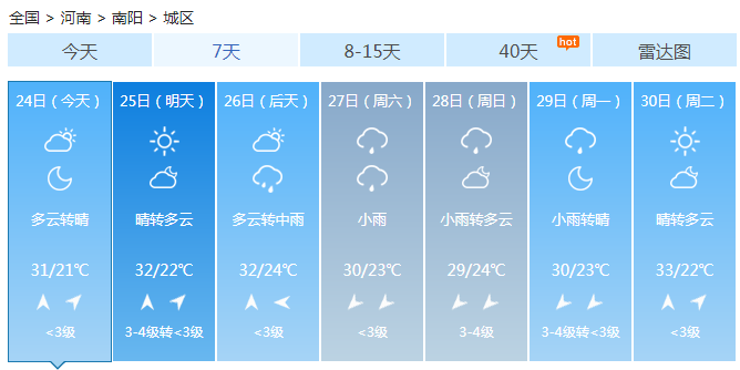 具体到我省,今天白天到夜里,北部多云转阴天,其它地区多云间晴天。全省偏西风转偏南风2到3级。气温较昨日有所升高,最高温度全省31℃到33℃。