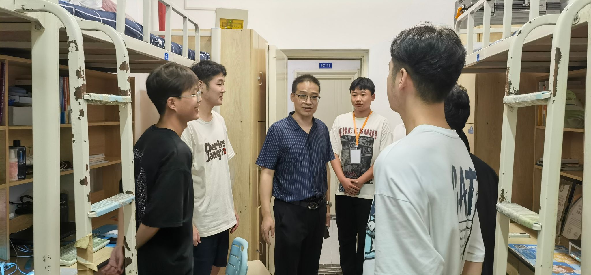 在宿舍走访的过程中,张贺玲和肖磊亲切地问候返校学生,仔细询问大家学习和生活上是否存在困难,并给予相应的指导和建议。同时叮嘱同学们要加强个人安全防护意识、保持宿舍环境卫生、养成良好的生活习惯,希望同学们要以昂扬向上的精神状态和积极乐观的态度投身于新学期的学习生活中。