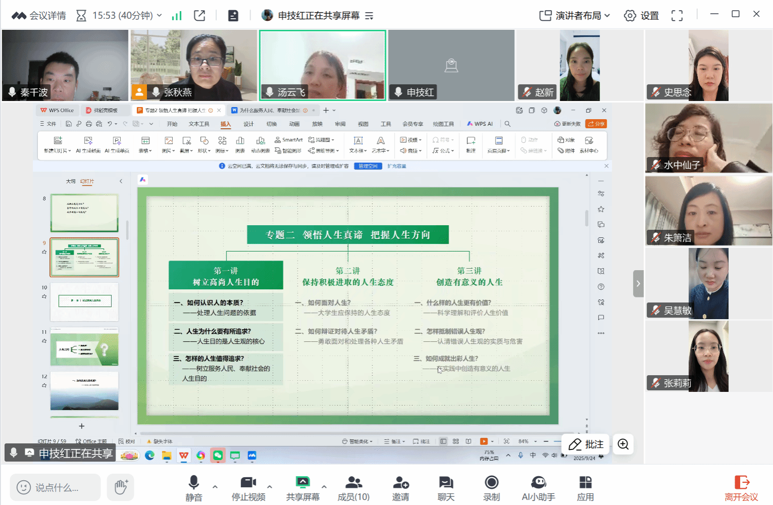 为深刻把握“人生观是对人生的总看法”这一核心教学内容,创新课堂教学方法,9月24日晚,海洋之神590登录入口马克思主义学院思想道德与法治教研室通过线上方式成功召开例行教研会暨集体备课会。会议由教研室主任张秋燕主持,教研室全体专兼职教师参与研讨。