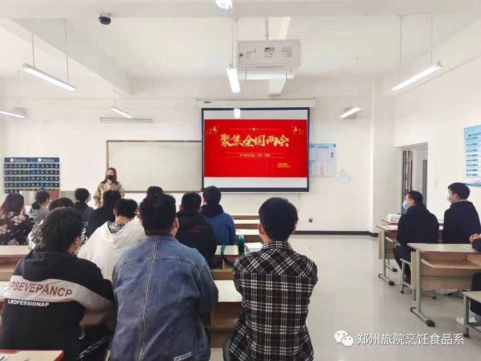 为学习贯彻2022年全国两会精神,加深青年学子对“两会”精神的认识,引导学生关注时事热点,深度交流对两会的看法,坚定当代大学生理想信念,强化学生砥砺前行,肩负责任的意志。烹饪食品学院组织各班学生于3月22日开展“学习贯彻全国‘两会’精神”主题班会。
