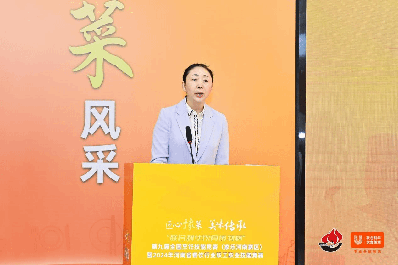 河南省总工会副主席、党组成员王占波致辞,他指出此次竞赛是展示河南餐饮文化、提升行业技能水平的重要平台,希望参赛选手能够发扬工匠精神,为推动河南餐饮行业的繁荣发展贡献力量。