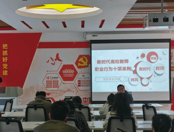 烹饪食品学院院长李晓东领学《新时代高校教师职业行为十项准则》