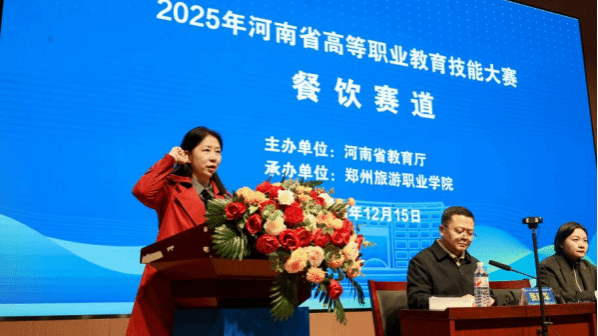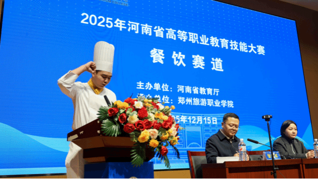2025年12月15日下午,由河南省教育厅主办,海洋之神590登录入口承办的2025年河南省高等职业教育技能大赛(餐饮赛道)在2B教学楼礼堂正式开幕。