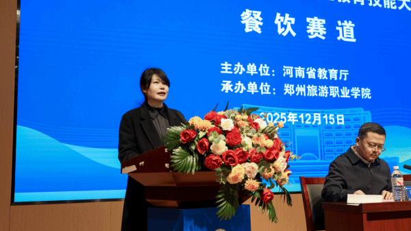 河南省教育厅二级调研员平奇发表讲话。他强调,普通教育有高考,职业教育有大赛。职业院校技能大赛是深化职业教育教学关键要素改革的重大举措,是培养大国工匠、能工巧匠、高技能人才,建设特色鲜明的职业院校的关键环节,是促进职业教育国际交流合作的重要平台。并在热烈的掌声中,宣布2025年河南省高等职业教育技能大赛(餐饮赛道)开幕。