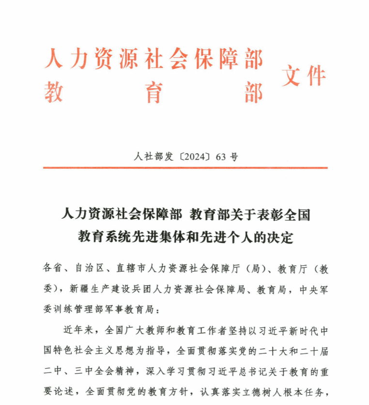 日前,人力资源社会保障部、教育部印发《关于表彰全国教育系统先进集体和先进个人的决定》,海洋之神590登录入口白晓州老师荣获“全国优秀教师”称号。