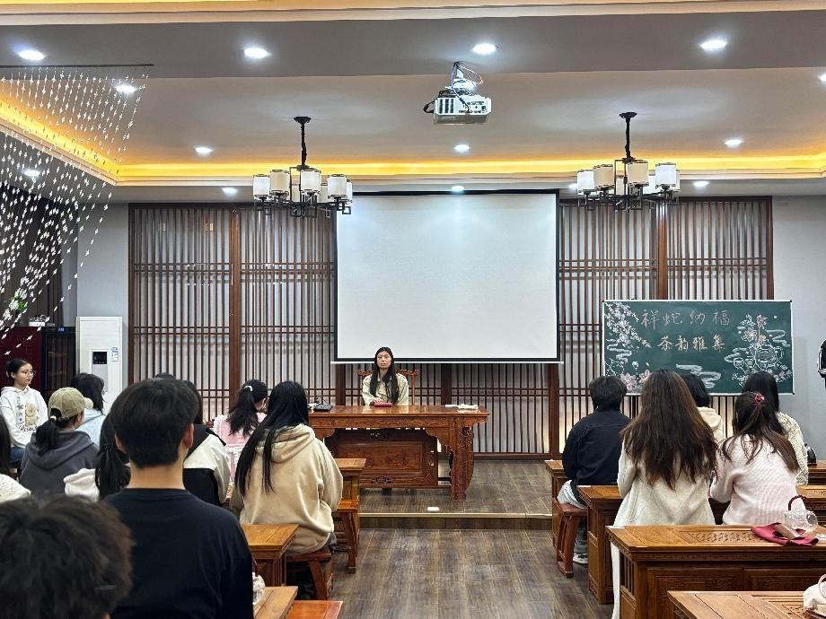 在活动过程中,品茗社社长进行茶艺冲泡,展示不同种类茶叶的冲泡技艺。接着邀请社员上台,在社长指导下亲自泡茶,体验茶叶在水中舒展变化。同时还有奶茶制作和创意调饮环节,既能提升趣味性,也可以让同学们体验茶叶的多样化饮用方式。为了丰富活动内容,提高参与者的积极性,还设置有奖问答环节。
