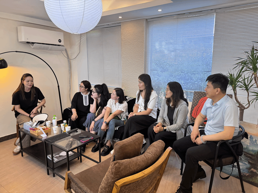 会谈结束后,教研室老师们与正在锦绣婚礼工作的2022级实习生代表以及已顺利毕业、在此就业的2021级毕业生代表举行了温馨的座谈会。老师们关切地询问了同学们的工作内容、生活状况以及职业发展中的困惑与挑战,细致了解了他们的薪资待遇、住宿通勤等实际问题,并耐心听取了学生们对学校实践教学环节的反馈和建议。2021级的学姐还分享了从学生到职业人身份转变的心得体会,并向学弟学妹们送上了诚挚的寄语,鼓励他们珍惜实习机会,夯实实践技能,为未来职业生涯奠定坚实基础。