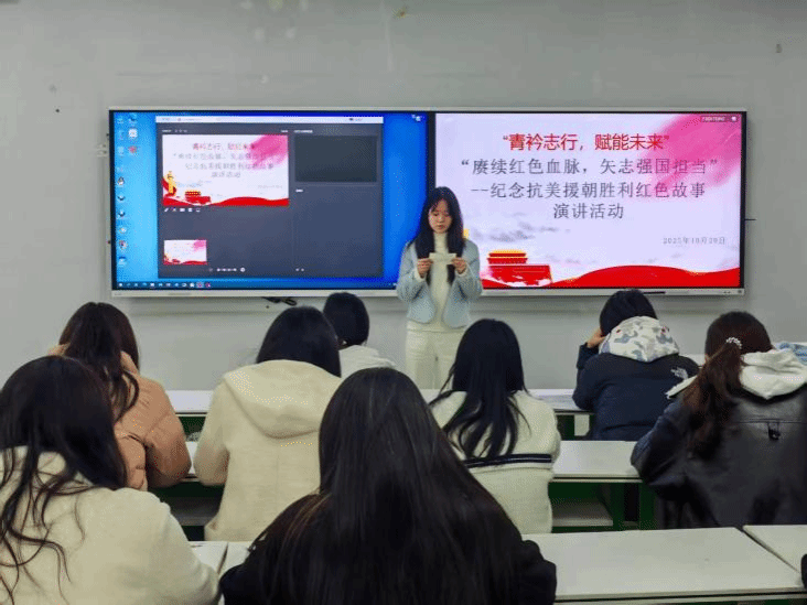 为纪念抗美援朝战争胜利,弘扬爱国主义精神,引导广大青年学生铭记历史、砥砺前行。2025年10月20日,智慧服务学院在1A501教室举办了“赓续红色血脉,矢志强国担当”纪念抗美援朝胜利红色故事演讲活动。