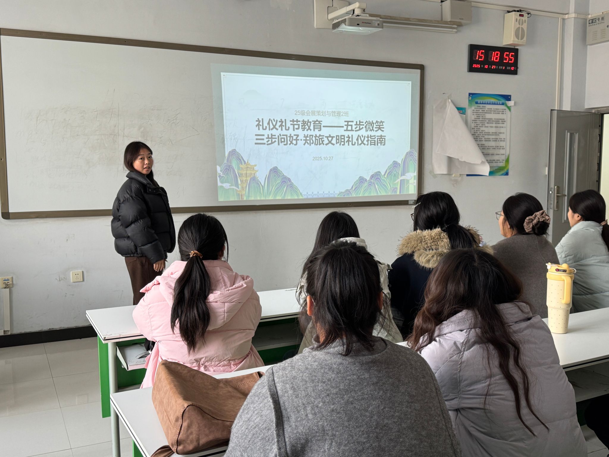 10月27日,智慧服务学院于在1A教学楼开展“礼仪礼节教育”主题班会。本次主题班会旨在进一步推进文明校园建设,提升学生文明礼仪素养。