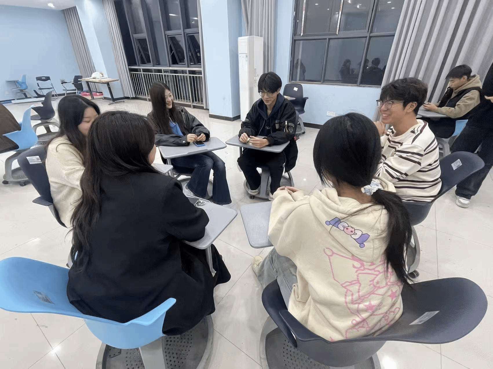 活动现场热火朝天,陌生的同学因随机分组快速熟络起来。大家围坐一团,在“描述不能太明显”“推理要找关键点”的规则下,时而认真思考措辞,时而忍不住为队友的巧妙表达会心一笑,偶尔因误判引发的小乌龙更是让现场笑声不断。没有紧绷的竞争压力,只有轻松的交流与协作,同学们在一来一往的博弈中褪去拘谨,彼此的距离在欢声笑语中悄然拉近。