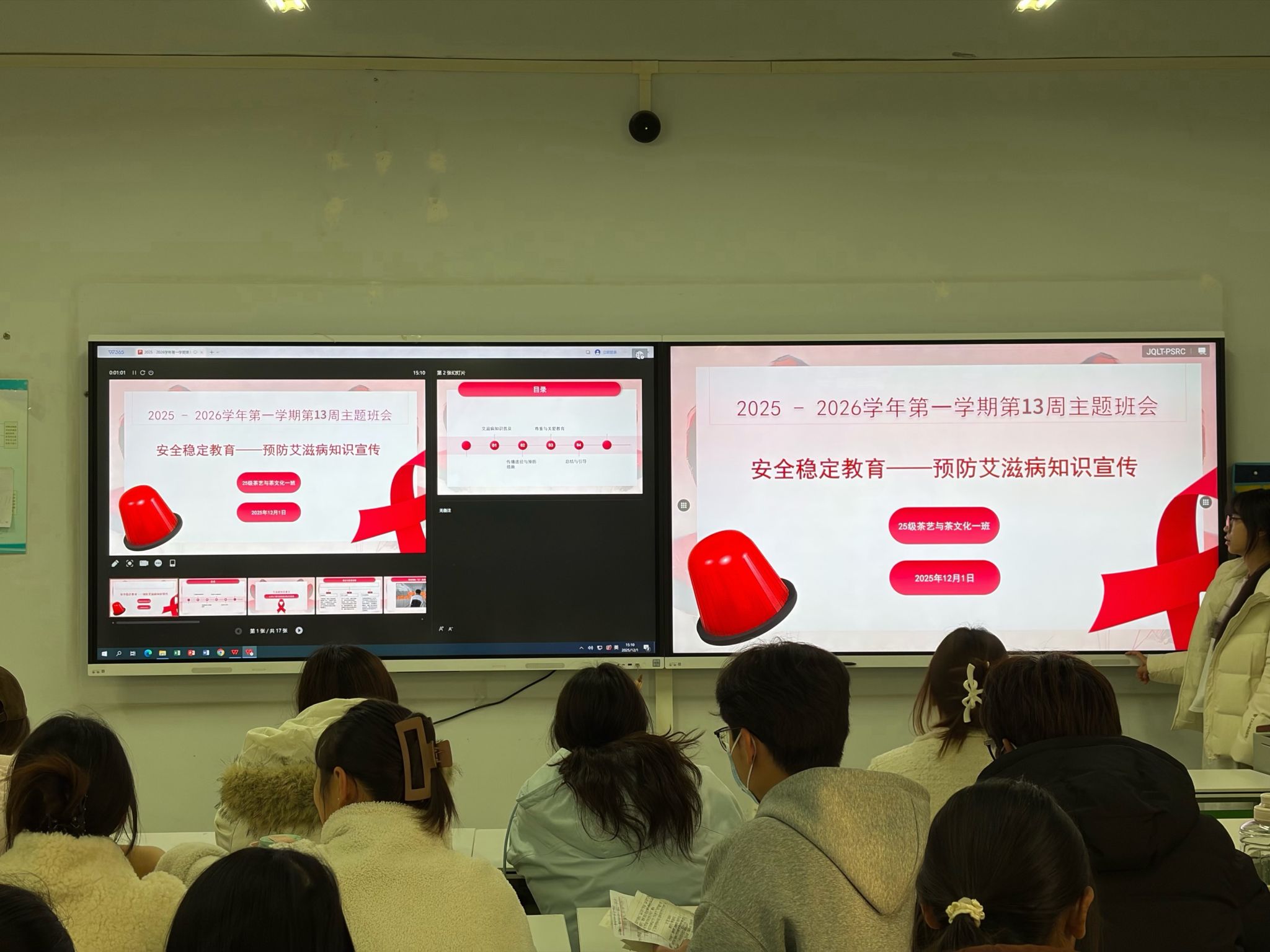 为进一步筑牢安全稳定防线,提高全体成员对艾滋病的科学认知,智慧服务学院于12月1日在1A教学楼开展“安全稳定教育——预防艾滋病知识宣传”主题班会。