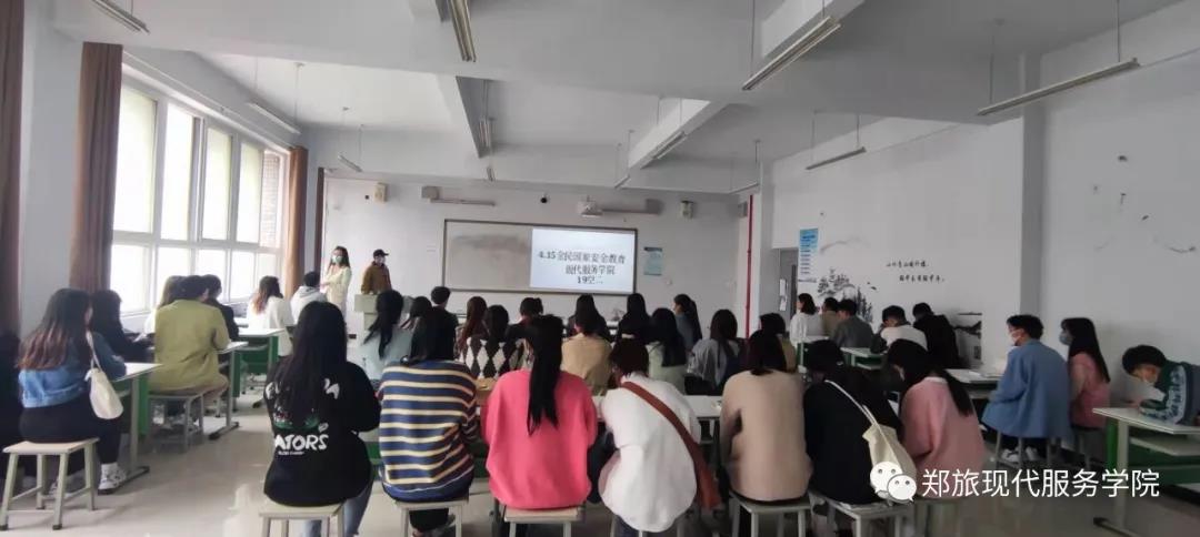 为全力打造平安校园,进一步提高学校学生的的消防安全意识和自防自救能力。现代服务学院于2021年4月6日在一号教学楼以班级为单位开展“全民国家安全教育”为主题的消防安全班会。