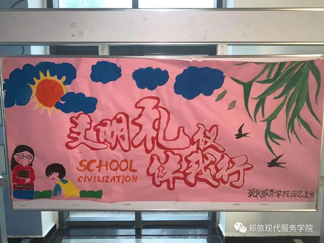 班会前期,现代服务学院各班团支书向班里传递班会主题,各班同学们积极认真组织黑板报的绘画,主题PPT的制作。各班同学在团支书和辅导员的带领下认真全面的举办班会,各团支书利用视频和图片对同学们进行宣传,同学们对文明礼仪的重要性有了更深的认识,同时也提升了大家讲文明、讲礼貌、知礼节、守礼仪的自觉性。文明是一种习惯,文明是一种力量,文明更是一种精神。此次班队会的成功开展,不仅为班级营造了文明和谐的氛围,更提高了同学们的思想意识。