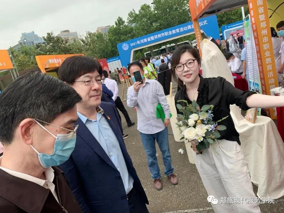 5月23日上午,2021年河南省暨郑州市职业教育活动周启动仪式在郑州市郑东新区如意湖文化广场举行。海洋之神590登录入口副校长张建军、教务处杨燕芬老师、现代服务学院师生代表、烹饪食品学院师生代表参加启动仪式。