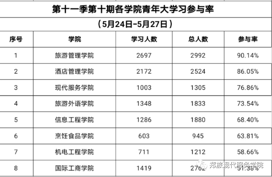 在“青年大学习”活动中,现代服务学院各团支部积极参与,学习成绩显著,参与率在全校名列前茅,以下团支部在“青年大学习”活动中参与率为百分之百:20级会展策划与管理一班、20级会展策划与管理二班、20级空中乘务一班、20级空中乘务三班、20级空中乘务五班、20级婚庆服务与管理一班、20级休闲服务与管理一班。