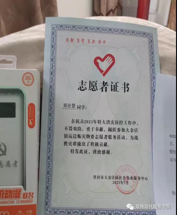 现代服务学院21级空中乘务四班郑佳慧参加了抢险救灾志愿工作和防疫志愿工作,从第一次核酸检测到第五次核酸检测,她从未缺席。不畏艰险、勇于奉献的她