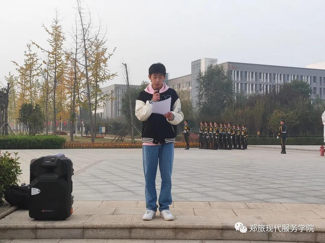 国歌奏唱完毕后,优秀学生代表20级空中乘务三班董飞燕进行国旗下的演讲。她说,每年7月1日是党的生日,中国的历史记载着她前进的每一步:在党的领导下,中华人民共和国成立了,社会主义实现了,改革开放成功了,香港、澳门回归了。我们的祖国已摆脱了过去的屈辱和贫穷,发展成为初步繁荣昌盛的新中国。新的世纪是一个充满希望的世纪,我们应在鲜艳的五星红旗下立下宏愿,树立远大的理想目标和正确的思想价值观,努力学习先进的文化知识,使之内化于心,外化于行,更要学而思之,学而用之,紧紧跟随党的领导,热爱祖国,勤奋学习,积极实践,为推进中国特色社会主义的伟大事业做出自己的贡献。