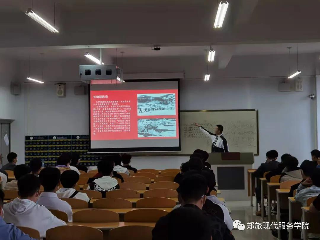 为进一步培育和践行社会主义核心价值观,弘扬爱国精神,传承红色文化,增强爱国爱党情怀。2021年11月5日,现代服务学院学生党支部在1A505举办党史学习教育专题讲座--“立报国之志,增报国之才,践爱国之行”。学生党支部书记段会利、副书记石艳春参加,20级空中乘务五班退伍军人常键睿主讲,我院有参军之志的学生参与。