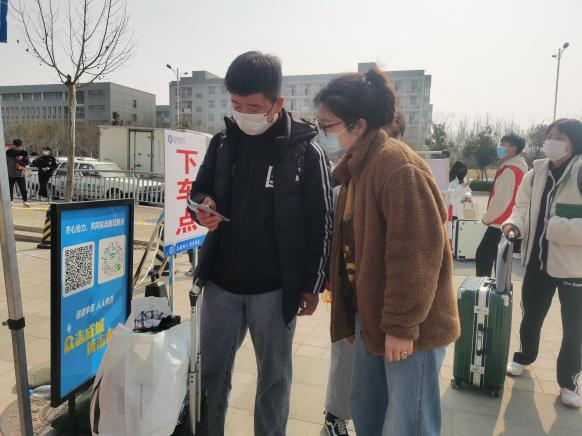 返校前,学生在“郑好办”上提交返校申请信息,并自行打印好开学五项健康档案等材料,经老师审核通过后方可按时间安排进行返校报到。在校门口,工作人员引导学生有序排队、接受体温监测、出示健康码、行李消杀……把好入校第一关,筑牢校园安全防线,我院还专门安排了志愿者和车辆,帮助有需要的同学进行行李托运,为回校学生保驾护航。