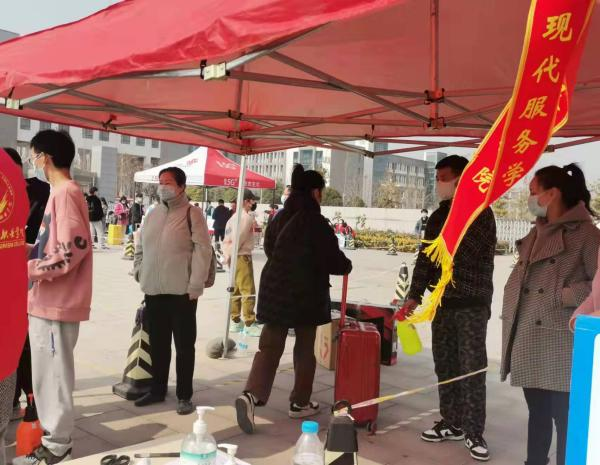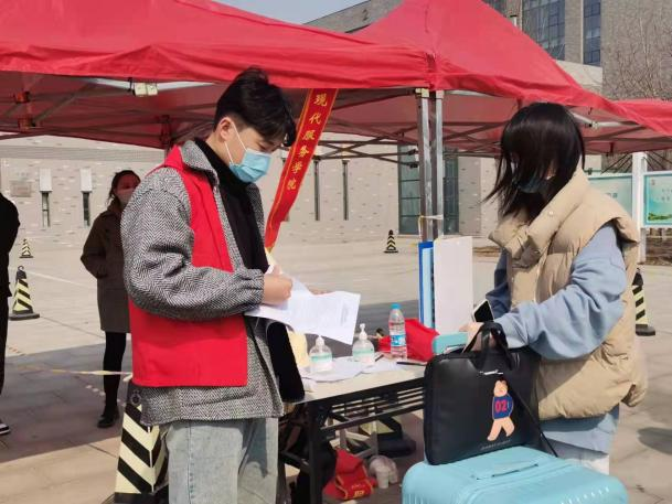 春风化疫时,学子归校日。2月27日下午,我院2022年春季学期学生如期开学返校。我院领导高度重视,现代服务学院院长许向蒲、党总支书记郭防、党总支副书记岳正阳以及辅导员石艳春、张淑真、赵爽、石帅等老师亲临现场检查指导开学工作。