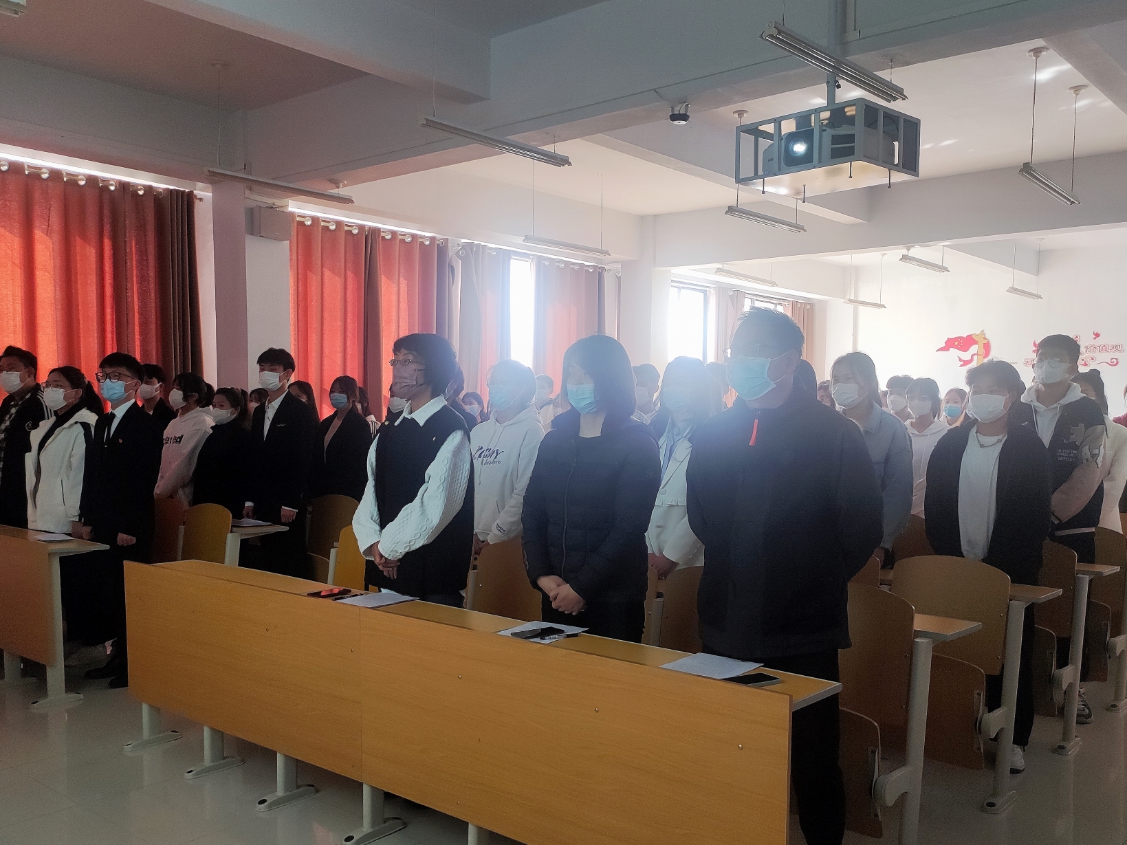 仪式由张淑真老师主持,党总支副书记岳正阳,学生支部石帅老师,辅导员赵爽老师及20、21级团干和寒假抗疫先进个人代表共同参加。