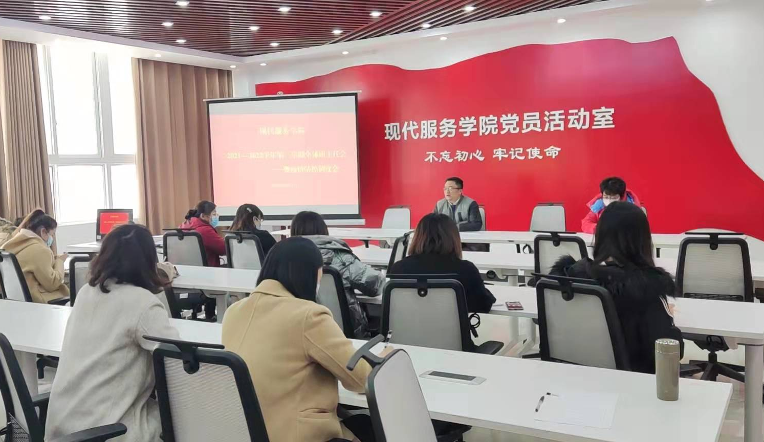 2022年3月21日在1A208召开全体班主任会暨疫情防控调度会。会议由现代服务学院党总支书记郭防主持,副书记岳正阳出席会议,全体在校生班主任参加会议。