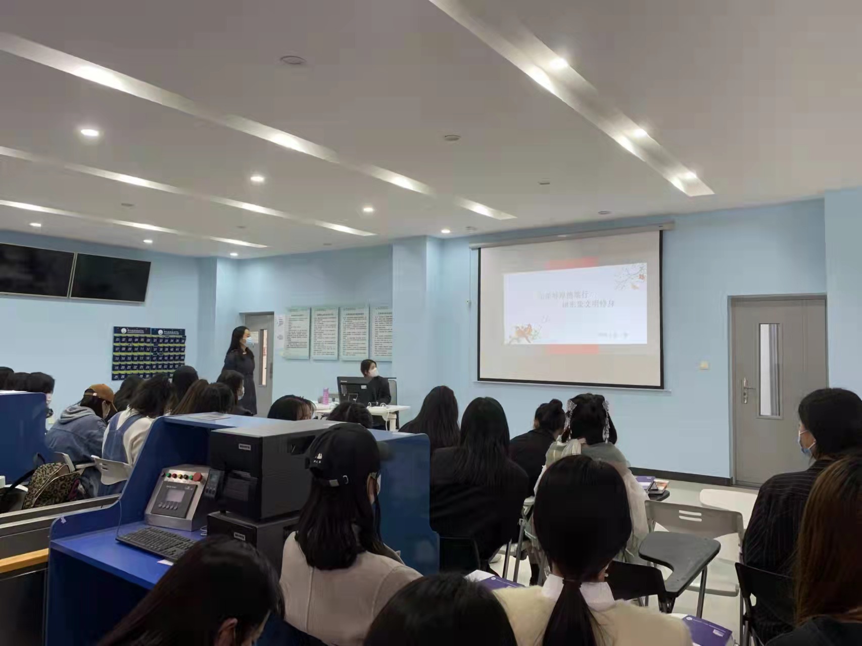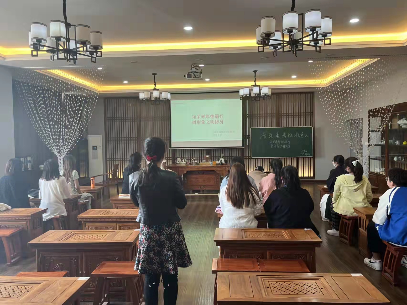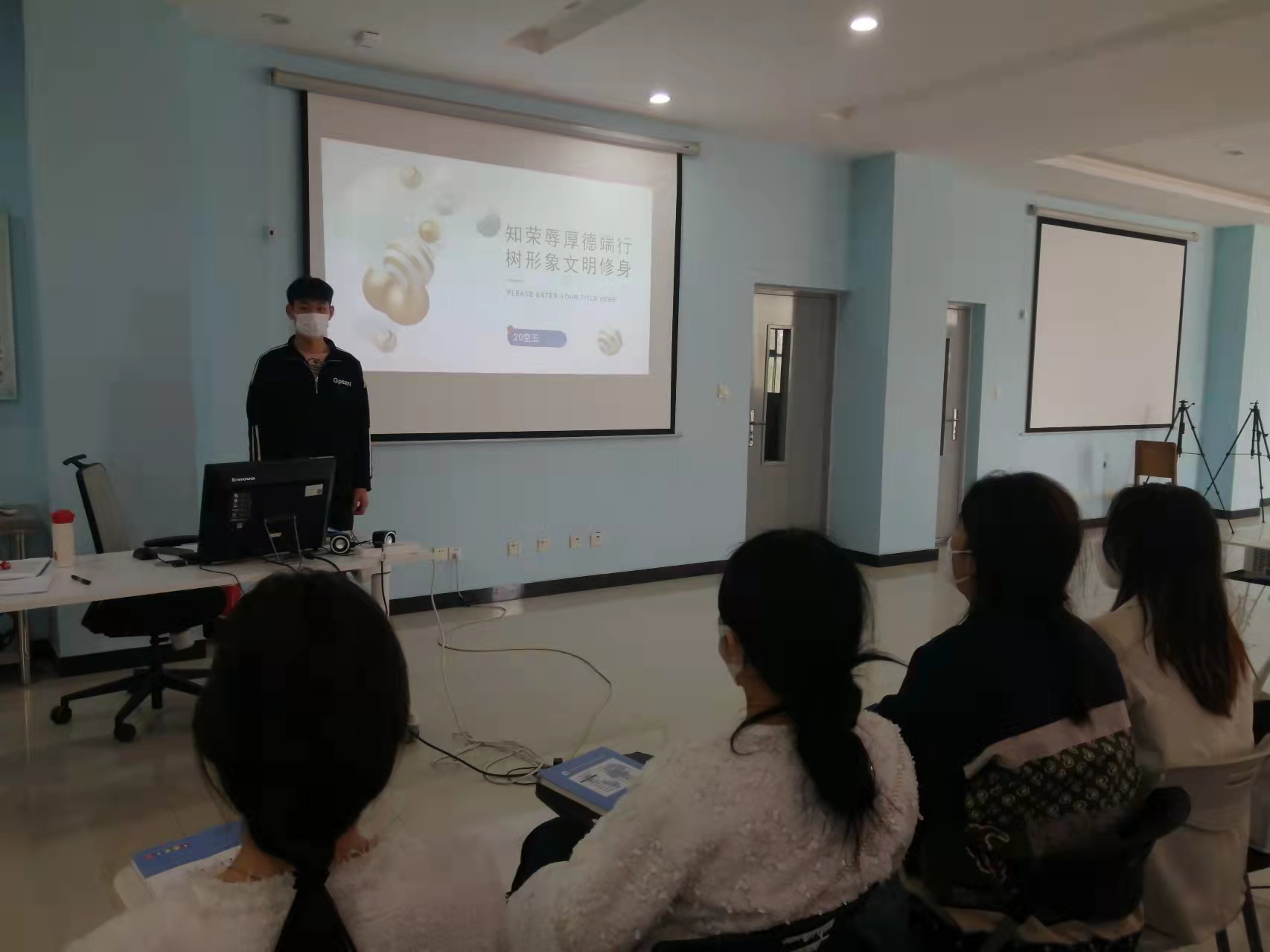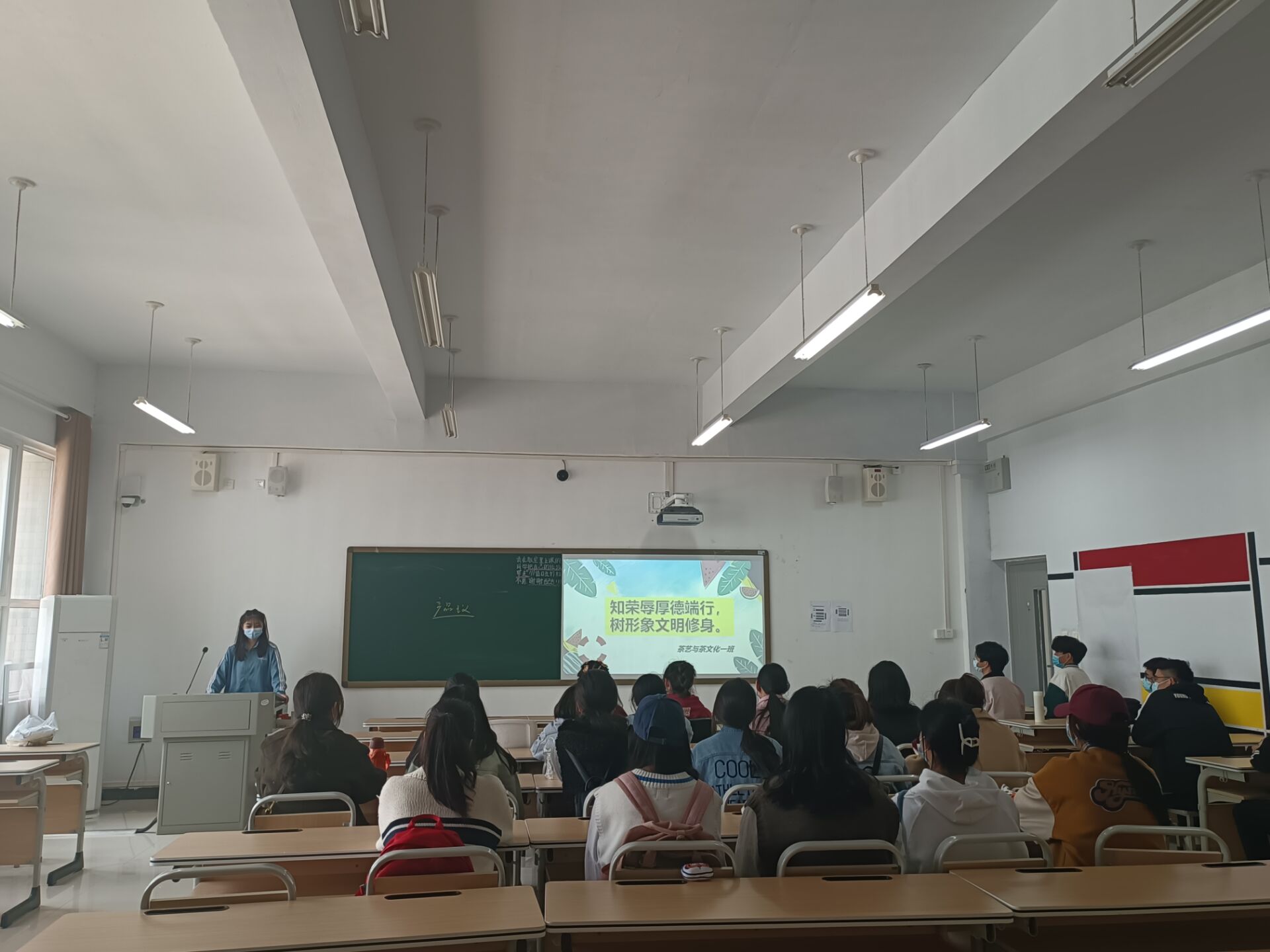 为了传承和发扬中华优秀传统文化,进一步提升学子文明素养,现代服务学院于2022年3月28日开展了“厚德端行知荣辱,文明修身树新风”为主题的班会。