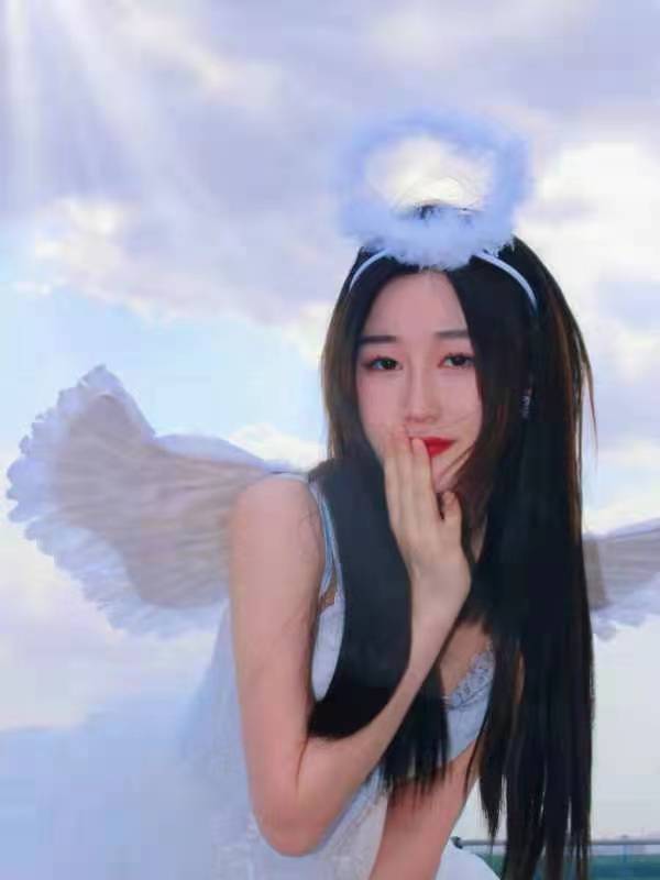 用一盏黄色的灯光打在身上仿佛神明少女的降临。