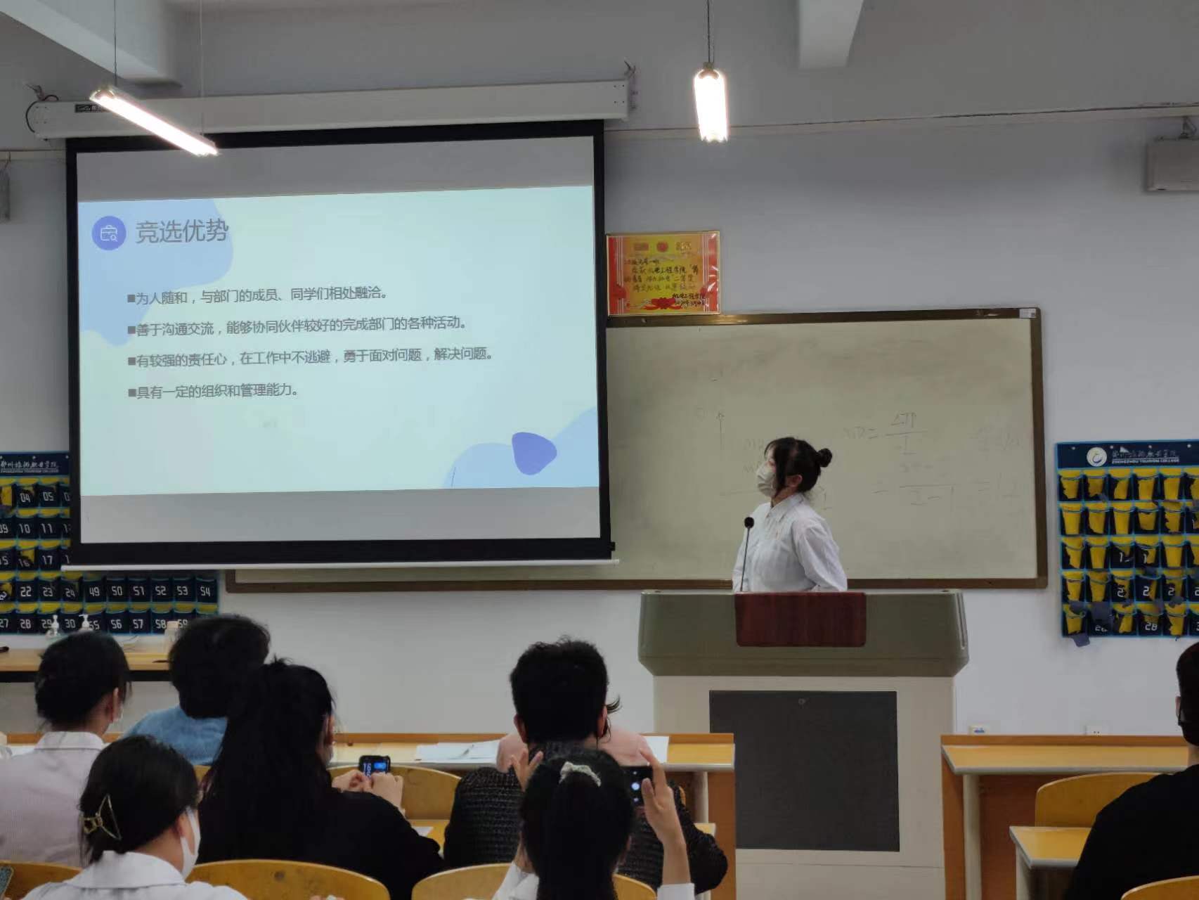 竞选者依次登台进行演讲,分别就各自的基本情况、竞选优势、对竞选岗位的认识以及未来工作的展望进行了讲解,展现出学生干部应有的自信和昂扬的精神,让在评委感受到了他们服务学校,服务同学的坚定信念和迎难而上、开拓进取的决心,赢得了场上的阵阵掌声。