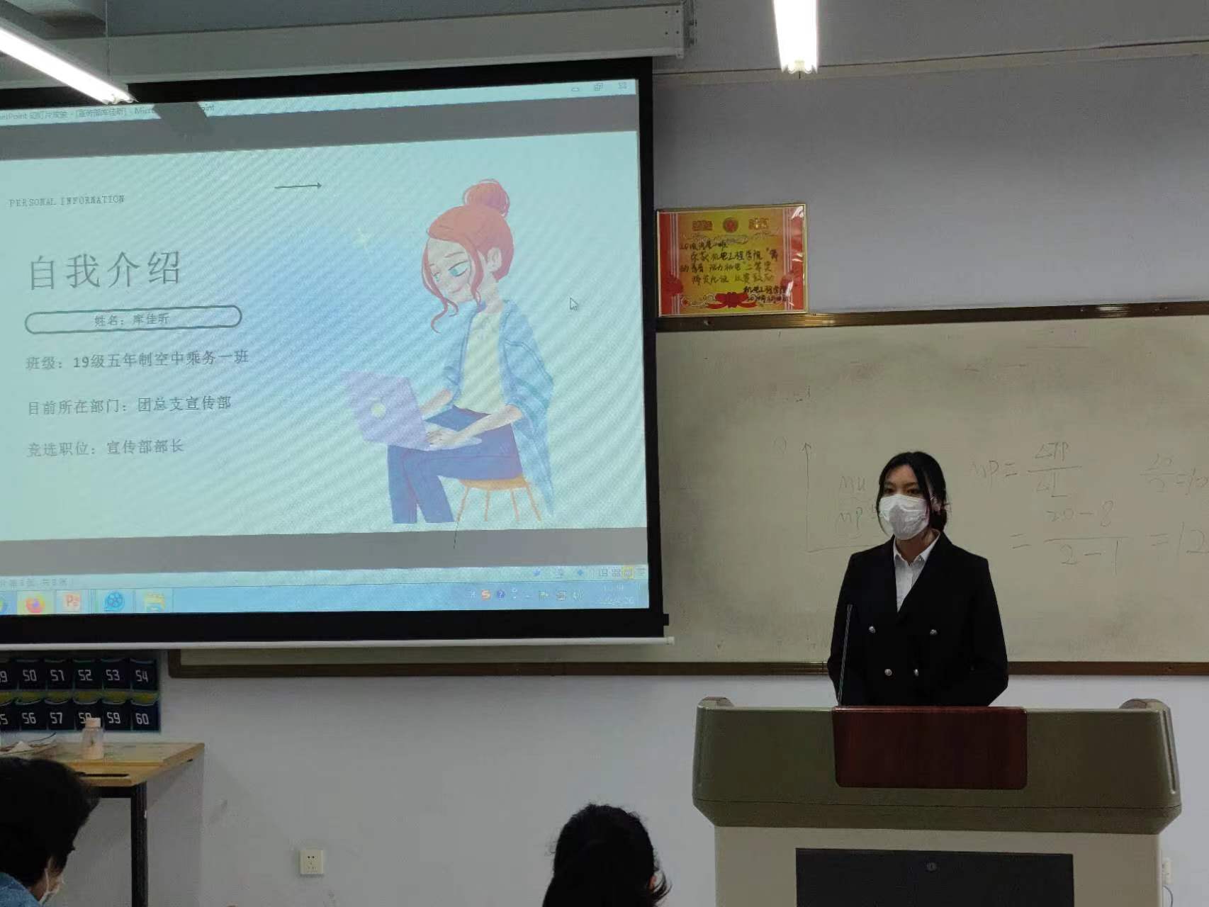 时光荏苒,又是一年换届时。为完善学团组织结构,保证学团工作的传承性和连续性,及时有效的为学团干部队伍补充新生力量,2022年4月26日,现代服务学院学团干部竞选大会在1A507教室顺利举行。