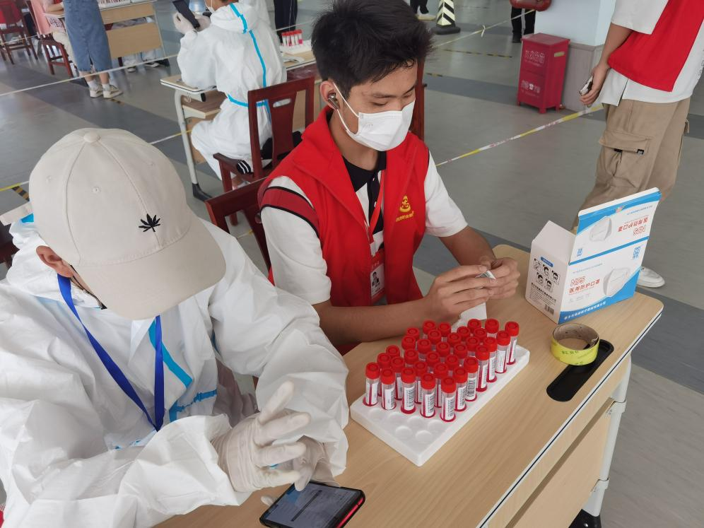 志者们身穿防护服,为同学们配送餐水、做核酸、转运隔离,在校园内来回奔波。防护服里是汗流浃背,防护服外是高阳烈日,志愿者们已经顾不上身体上的劳累,一心一意的实施防控举措,引导同学们消除恐慌情绪,牢固树立信心决心,坚决打赢校园疫情防控阻击战。