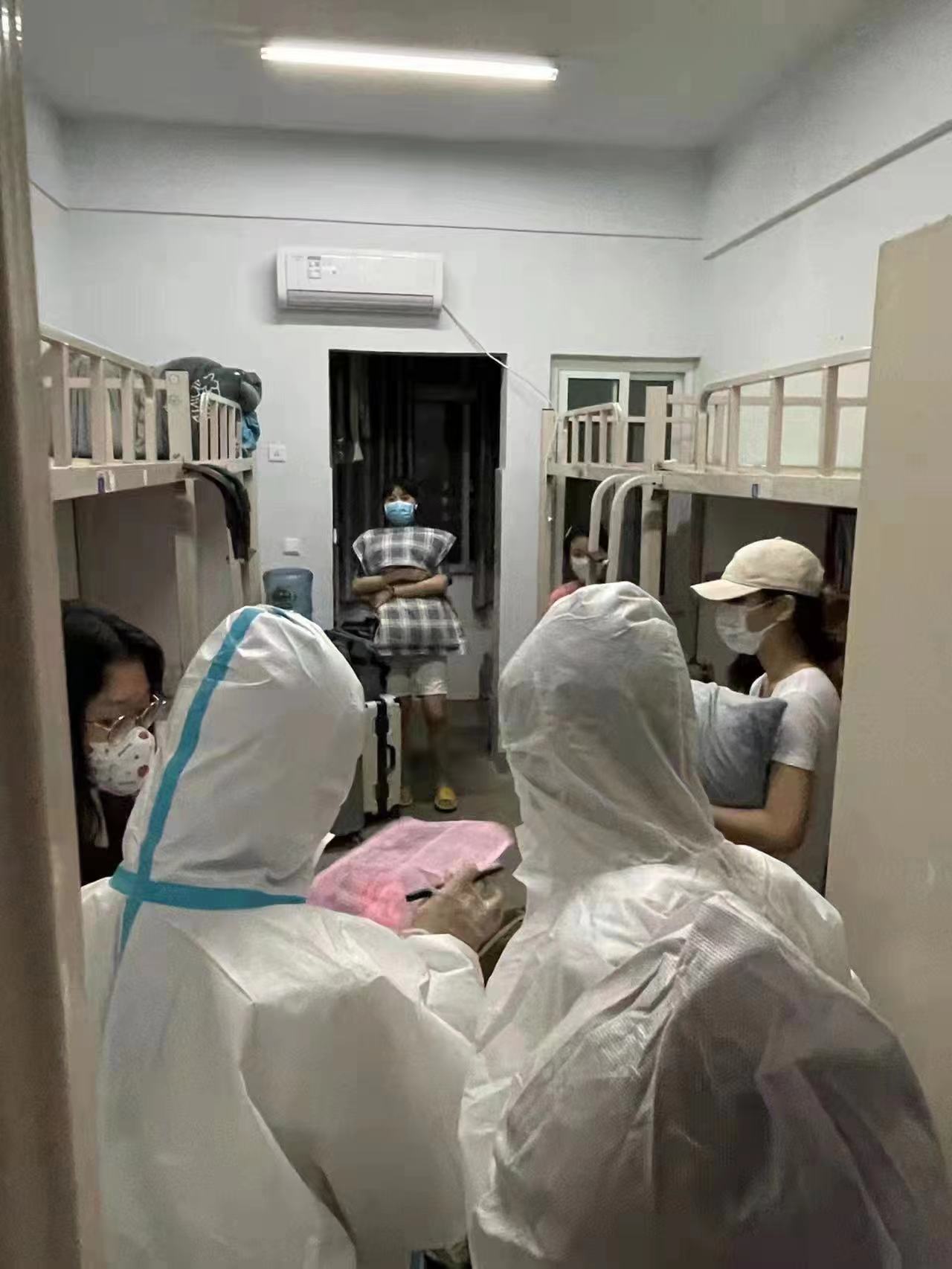 石艳春变身可爱的“大白”,奔忙在宿舍楼的每个角落。学生的隔离转运工作,是重中之重。她提前进行心理疏导,安抚学生的焦虑情绪,有序开展学生的隔离转运工作。同时,她认真组织学生开展核酸检测工作,确保应检必检,不漏一人。
