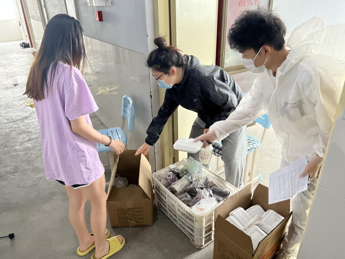 林静老师认真组织、积极维持核酸检测秩序,做到应检尽检,不漏一人。分批、分区有序将早、中、晚饭菜配送到每一个学生手中。