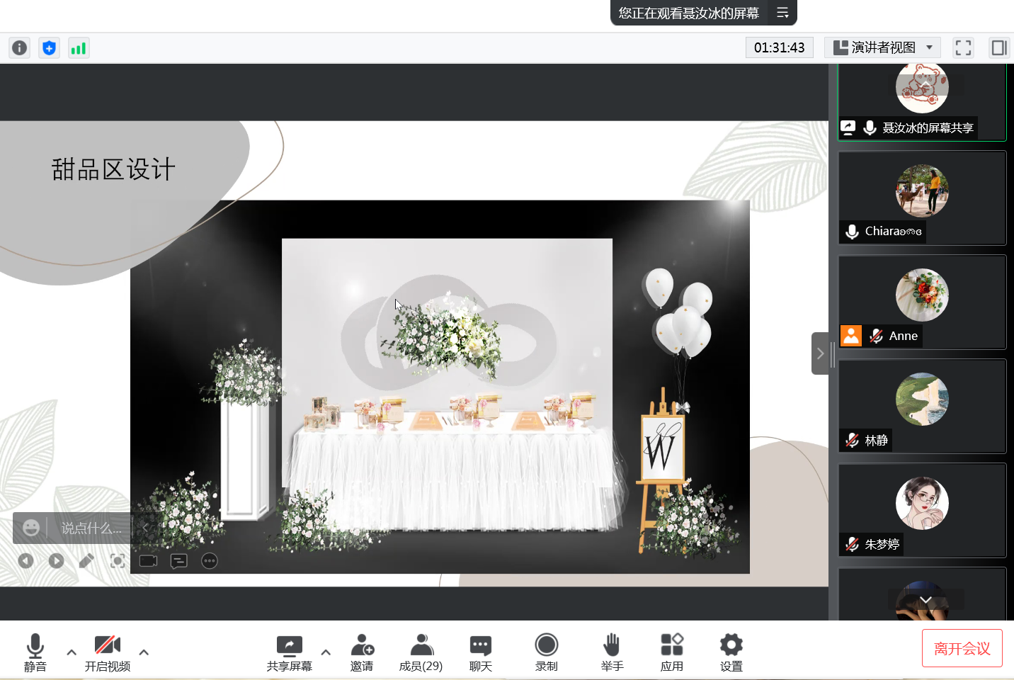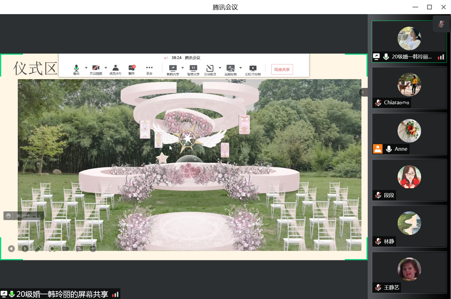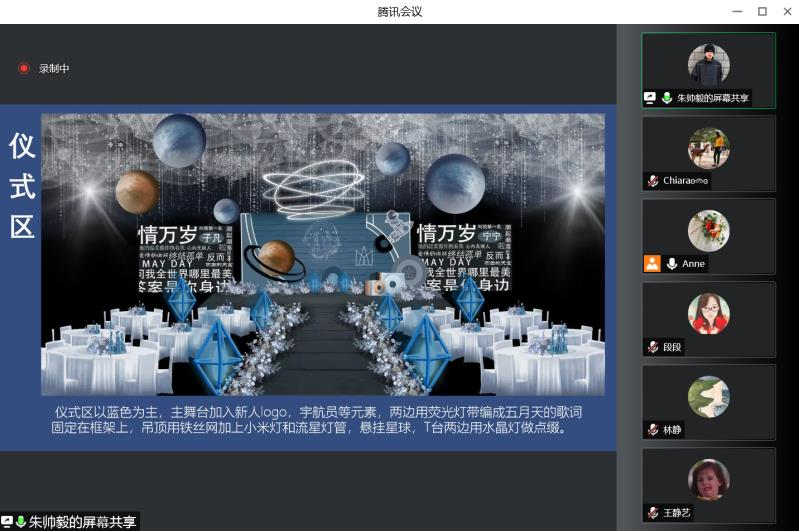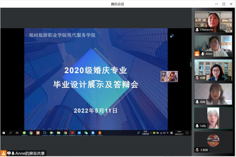 2022年5月11日下午,婚庆服务与管理教研室通过腾讯会议召开了2020级毕业生婚礼策划方案云答辩。教研室主任李文娟及段会利、石艳春、林静、许莹老师担任答辩评委,20级全体婚庆专业学生参加了此次答辩。