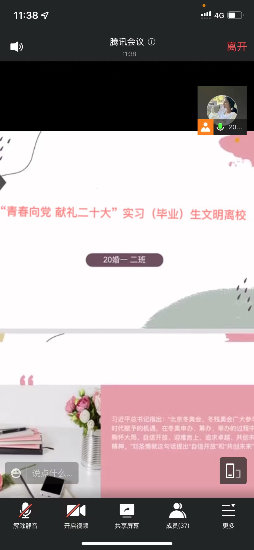 今年是中国共产党第二十次全国代表大会召开之年,中国共产主义青年团建团100周年,也是学校实施“十四五”规划攻坚之年。在这隆重特殊的时期,我们即将迎来2022年离校季。为营造安全健康、文明有序、积极向上的实习生离校氛围,结合学院实际,现代服务学院20级、18级五年制各班学生于2022年5月15日至16日在线上开展2022年“青春向党 献礼二十大”实习(毕业)生文明离校主题班会。