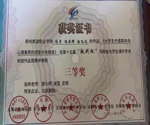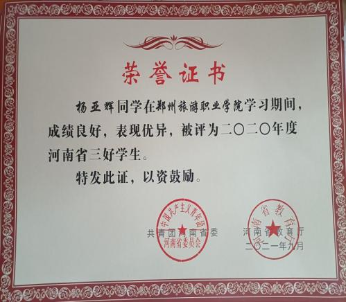本人从入校就读以来,一直以严谨的态度和满腔的热情投身于学习中,虽然有成功的喜悦,但也有失败的酸。然而日益激烈竟争的社会也使我充分地认识到:成为一名德智体美劳全面发展的优秀大学生的重要性。因此我仍然孜孜不倦,不断地挑战自我,充实自己,为实现人生的价值打下坚实的基础,曾在校荣获“河南省三好学生”奖和第十五届“挑战杯”河南省大学生课外学术科技作品三等奖等荣誉。