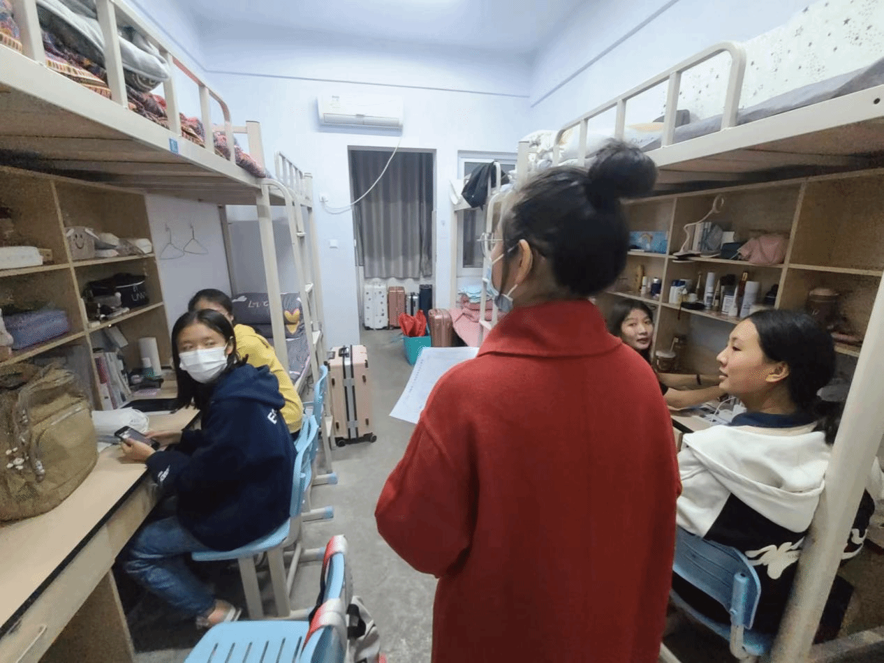 10月10日晚,结束一天的迎新工作后,现代服务学院党总支书记郭防、副书记岳正阳组织22级新生班主任、辅导员开展新生宿舍走访工作。为帮助新生适应学校生活,融入现代服务学院的大家庭,学院领导、老师深入宿舍,贴近学生,积极了解同学们所思所想,帮助同学们解决各种问题。