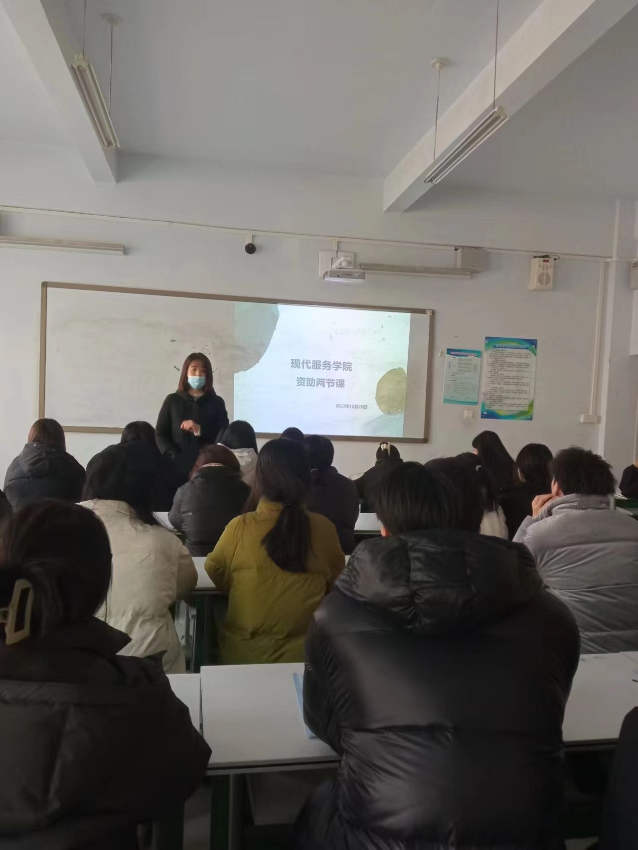 为贯彻落实学生资助政策,做好助学贷款还款服务宣传教育工作,推进学院资助工作更好地开展,现代服务学院于12月26日在1a504教室开展了学生资助政策宣传“两节课”活动,向各班学生宣传了国家关于助学贷款等资助政策。本次活动由学院负责贷款老师赵爽主持。