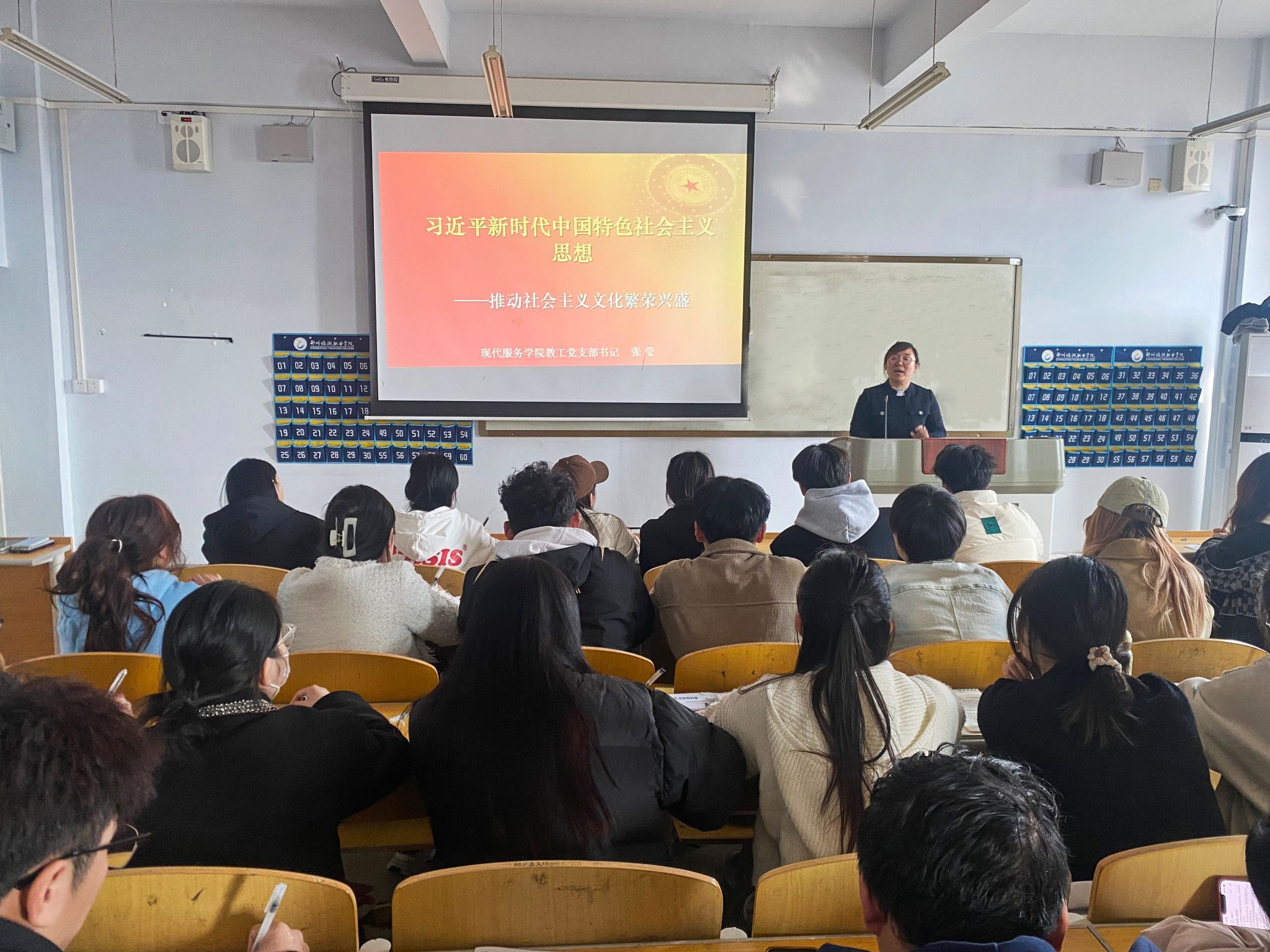 忆往昔峥嵘岁月,展未来任重道远。3月13日,现代服务学院教工党支部书记张莹在1A507教室为我院入党积极分子上了一堂题为《推动社会主义文化繁荣兴盛》的党课。