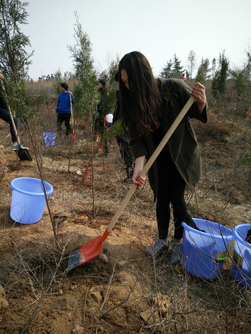 此次活动是我系青志部同学协助我院进行的植树志愿者活动,微风习习下,同学们辛劳的汗滴滑入满载希望和爱心的土壤中。纵然土中有很多石块,大家齐心协力为小树创建了一个舒适的窝,并为它浇灌生命之水。