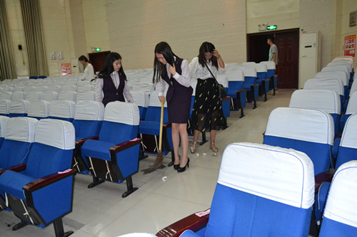 2016年5月23日晚自习课后,社会服务系青志部组织学生对西报告厅进行了打扫卫生活动。