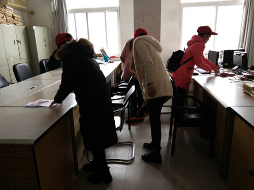 志愿者们在青志部的带领下,有条不紊对办公楼401和418进行了打扫。在志愿服务过程中,他们互帮互助,达到了较高的工作效率。看着同学们热情服务的样子,老师对这些行为做出了极大的夸奖。