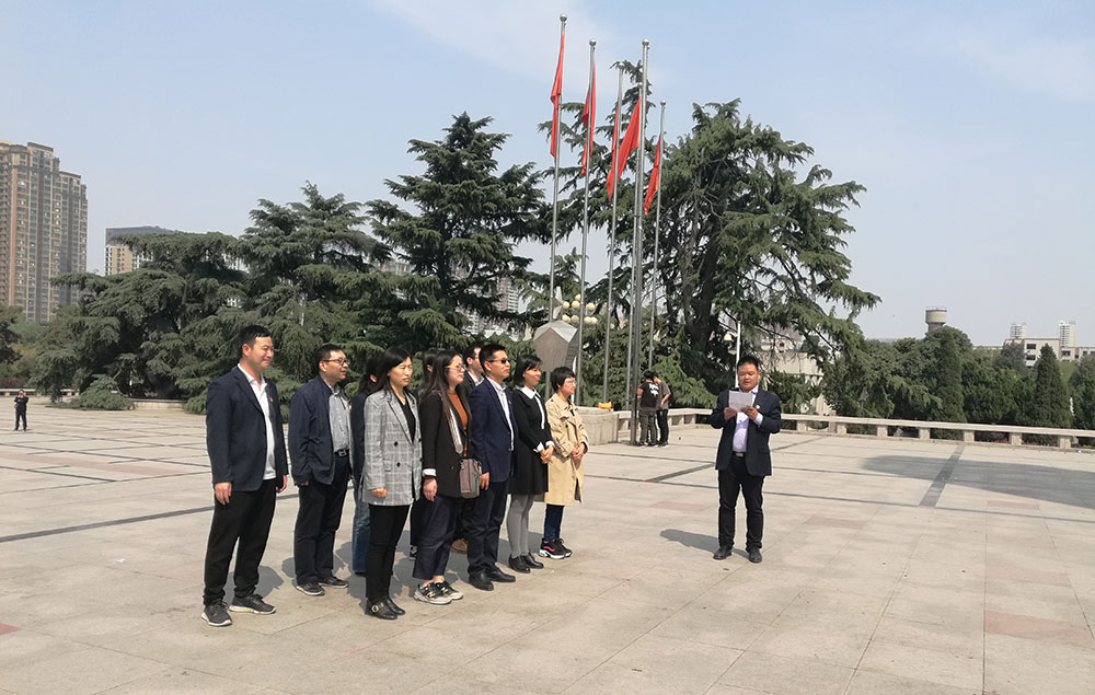 为深入贯彻党的十九大精神,切实加强党的建设,牢固树立“四个意识”,进一步增强党组织的战斗力和凝聚力, 4月4日,信息图书馆直属党支部组织全体党员和科级(含)以上干部前往郑州市烈士陵园祭扫烈士墓,缅怀革命先烈。校党委委员、工会主席石国河参加了活动。