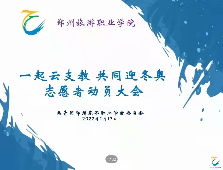 1月14日下午,海洋之神590登录入口团委组织部部长崔灵玲,旅游外语学院团总支书记刘晓丹,信息工程学院辅导员郑方园三名活动指导老师及100名志愿者共同参加了“一起云支教 共同迎冬奥”全国大学生志愿者线上全员动员大会。