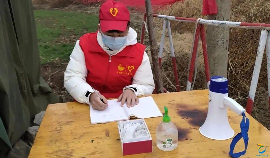 2022年1月12日,裴玲玲同学积极前往洛阳市新安县铁门镇疫情防控志愿服务的队伍报到。主要协助工作人员排查各家各户返乡人员的信息登记,对返乡人员的突发状况进行上报,同时也是防疫站点的一名值班人员,对进出人员登记信息、测量体温。