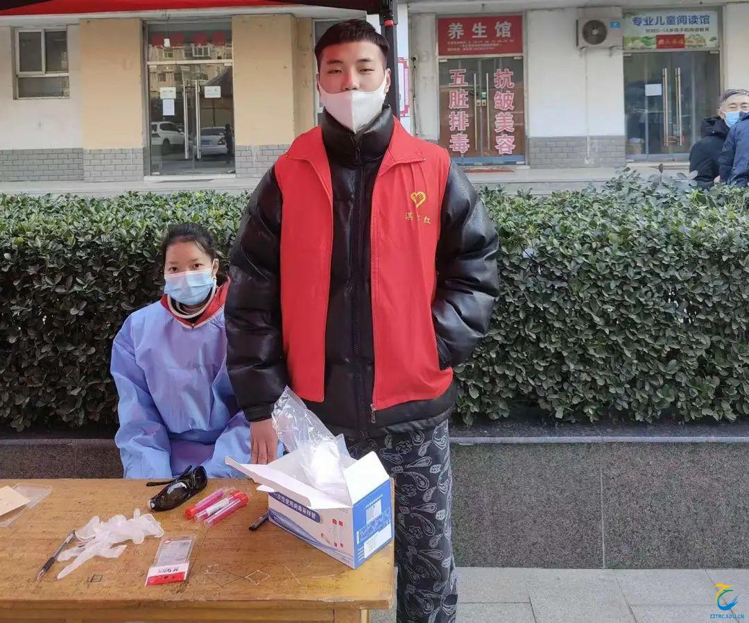 2022年1月10日,赵佳怡同学在河南省安阳市龙安区赵张村大队服务中心做疫情防控志愿者。协助工作人员部署疫情防控工作,维持核酸检测现场秩序,对待检测人员进行扫码测温等信息采集工作。