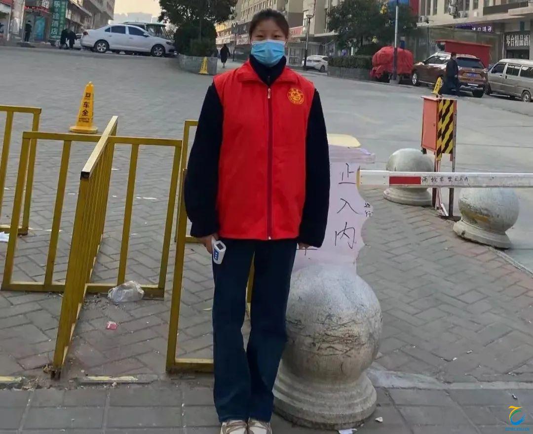 2021年12月24日,郑雅妮在郑州市航空港区滨河街道做疫情防控志愿者。她负责进出人员的体温测量,交通要道防控卡点值班,对来往车辆进行登记,并提醒来访人员戴好口罩,普及疫情防控知识。